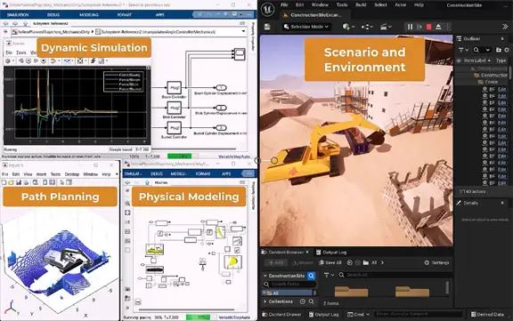 在建築、礦業、農業以及林業等產業中,負責開發重型機具先進控制、自動化以及自主功能的工程師,可以透過以下教學以及範例建立越野載具的虛擬測試平台。